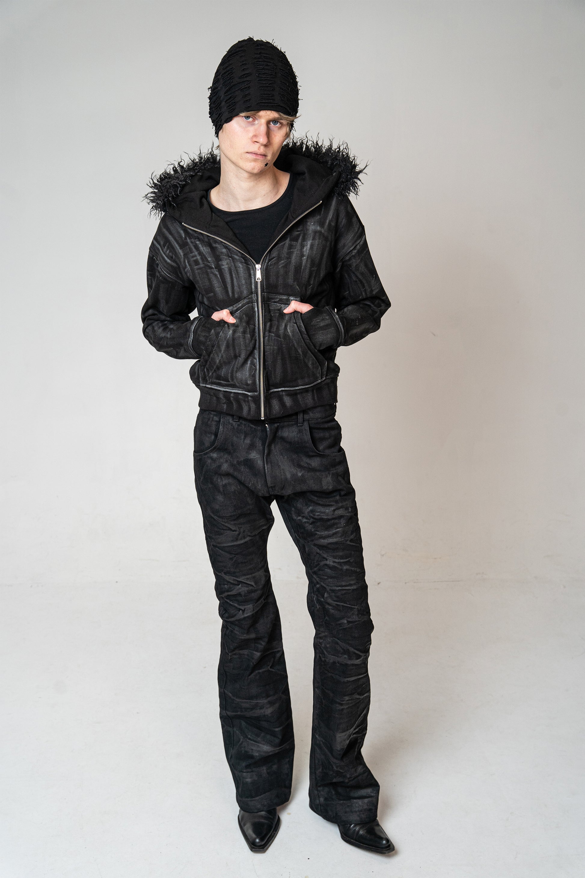 OBSIDIAN WAXED JEANS